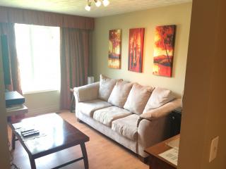 A family size suite at just under 1000 sq. ft. named for the private outdoor patio and garden. The main part of the suite has a king bed with a queen bed in a separate room next to the en-suite bath. The lounge area has ample seating for families and visitors alike. The kitchenette is a welcome addition as is the mini fridge, microwave, pod style coffee maker, 60 inch flat screen TV and free wi-fi.